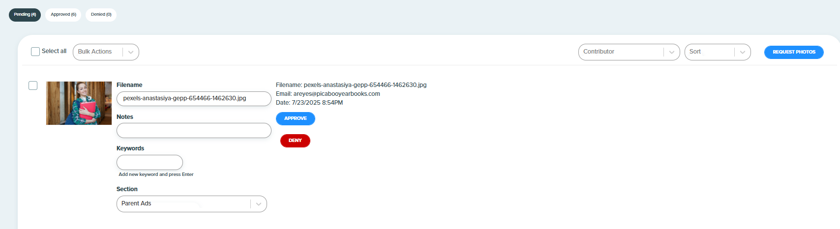 Want to request photos from specific people? Use the Request Photos button in the Contributed Photos module.