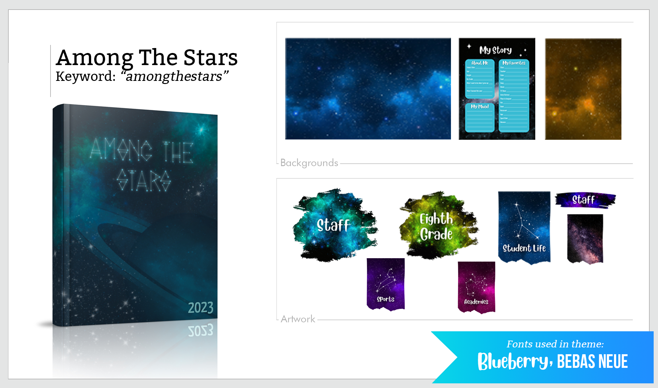 Be sure to check back often for new and exciting themes! We’re always adding fresh designs and creative ideas to help you make your yearbook stand out and perfectly capture your school’s spirit. ✨